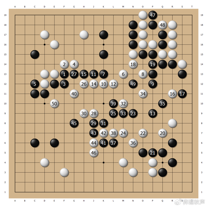 白42再抢上边,黑43继续稳扎稳打。