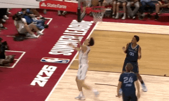 这球直接炸了!举火烧天完成单臂隔扣!小杨今夏NBA的第一记扣篮得分!